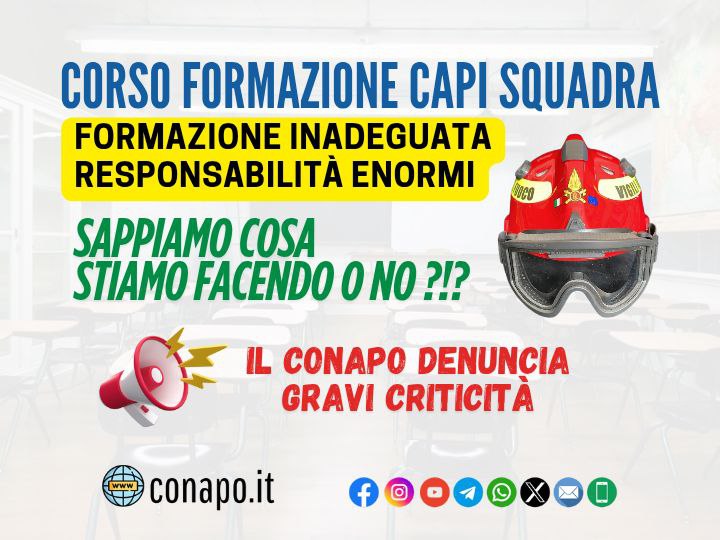 Il CONAPO esprime forte disappunto per la gestione e i contenuti inadeguati del corso di passaggio da Vigile del Fuoco a Capo Squadra.