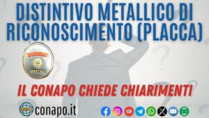 Giungono dal territorio alla scrivente O.S. CONAPO segnalazioni per cui al personale neo assunto non sarebbe stato distribuito il distintivo metallico di riconoscimento (placca).
