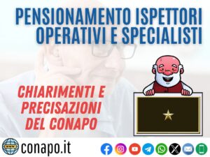 Nel rimanere a disposizione per qualsiasi ulteriore chiarimento tramite l’UFFICIO PENSIONI CONAPO, auguriamo a tutti una buona pensione!