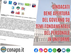 “In coerenza con l’attenzione che riserva alle Forze di polizia e alle Forze armate, il Governo prevede per i primi giorni di novembre un Consiglio dei ministri monotematico, che sarà dedicato alle misure di carattere economico, ordinamentale e di tutela degli appartenenti al comparto sicurezza e difesa. Tale seduta sarà preceduta da un incontro del Presidente del Consiglio e dei Ministri competenti con i sindacati rappresentativi del comparto”.