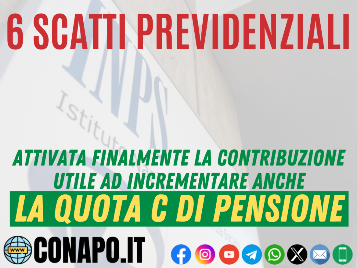 Home News 6 scatti previdenziali – Attivata finalmente la contribuzione utile ad incrementare anche la quota C di pensione