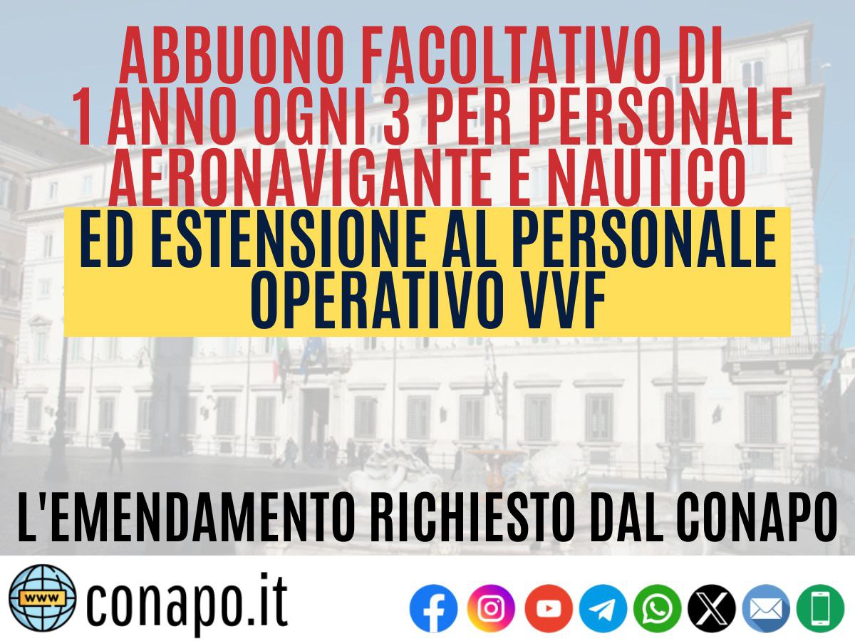 Oggetto: Aumenti di servizio ai fini previdenziali del personale aeronavigante e nautico del Corpo nazionale vigili del fuoco – Richiesta di esercizio facoltativo del beneficio. Richiesta estensione al personale dei ruoli operativi del CNVVF (al pari altri Corpi).