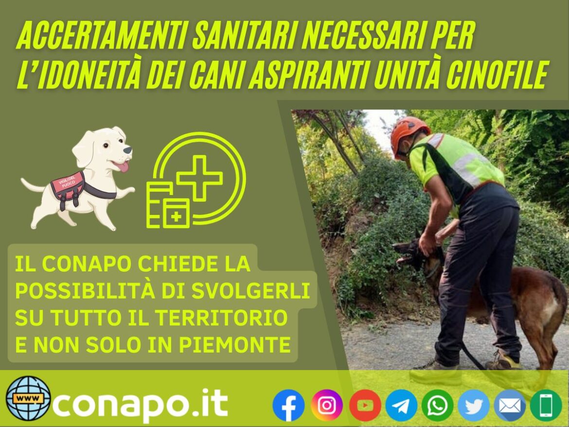 Per quanto sopra, questa O.S. CONAPO, anche in un’ottica di risparmio economico oltre che di benessere animale, chiede che sia dato mandato a tutte le Direzioni regionali VV.F. interessate (non solo a quella del Piemonte!) l’organizzazione degli accertamenti sanitari previsti dalla Circolare EM 19/2021.