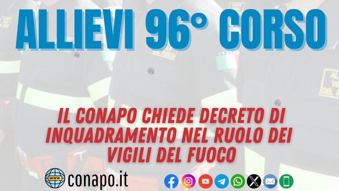 Home Bacheca Sindacale Allievi 96° Corso: il CONAPO chiede decreto di inquadramento nel ruolo dei Vigili del Fuoco.