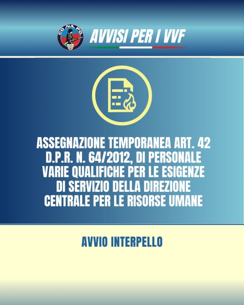 Assegnazione temporanea, ai sensi dell’art. 42 del D.P.R. n. 64/2012, di personale appartenente ai ruoli informatici per le esigenze di servizio della Direzione Centrale per le Risorse Umane – Avvio interpello.