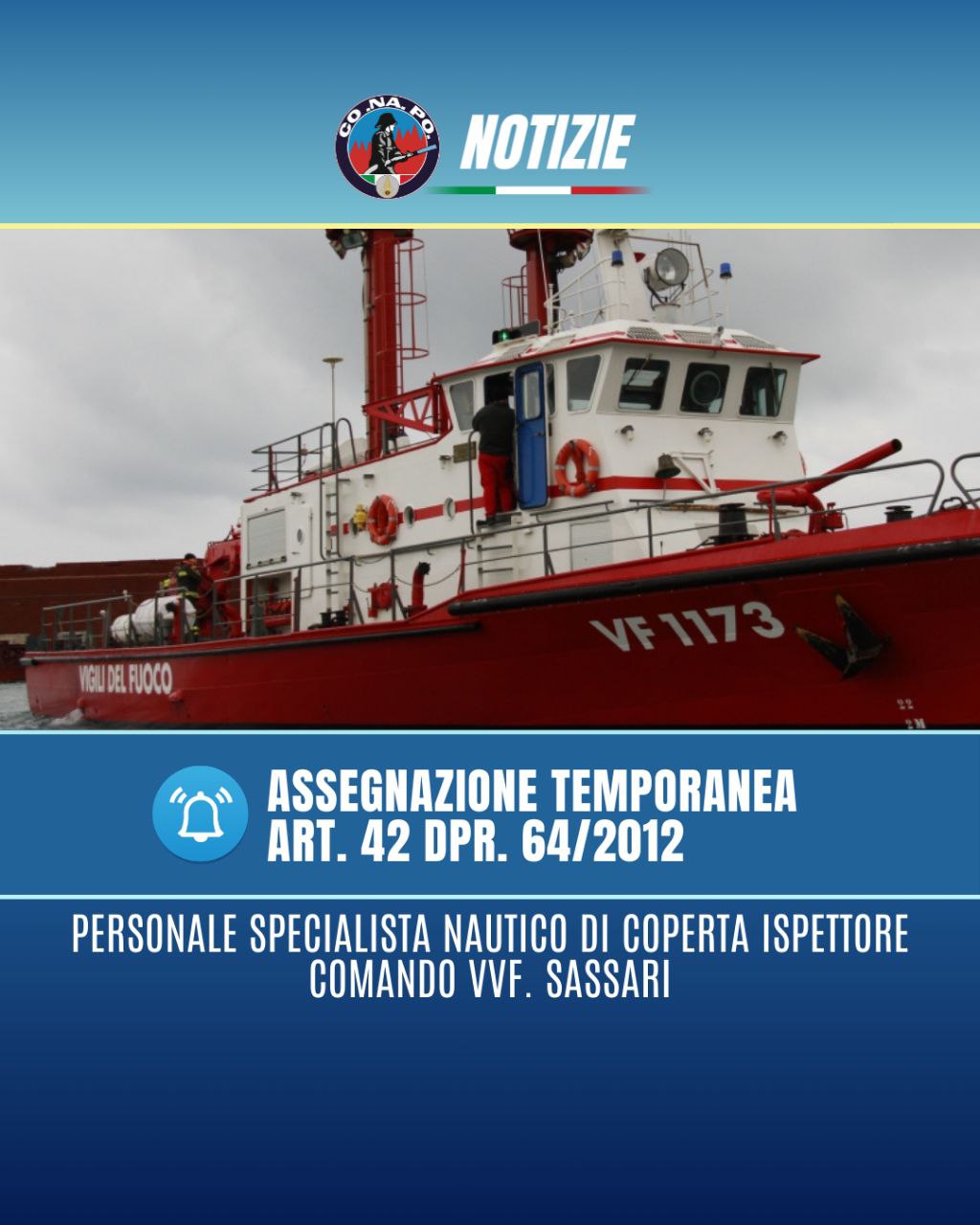 Assegnazione temporanea, ai sensi dell’art. 42 del D.P.R. n. 64/2012, di personale specialista Nautico di Coperta Ispettore, presso il Comando VVF di Sassari – Avvio interpello.