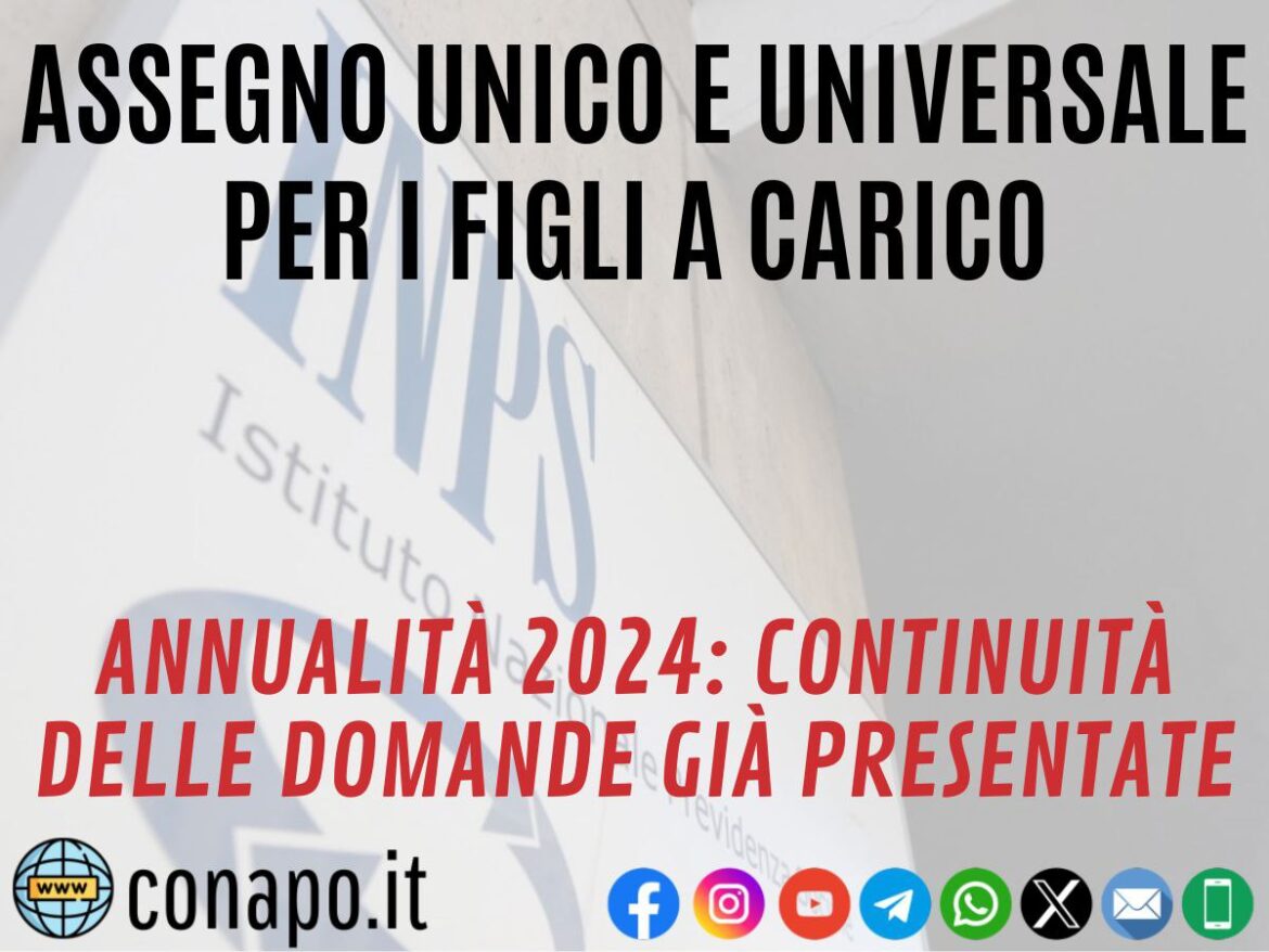 Assegno unico e universale per i figli a carico. Annualità 2024: Continuità delle domande già presentate e nuovo Calendario dei pagamenti per il periodo gennaio-giugno.