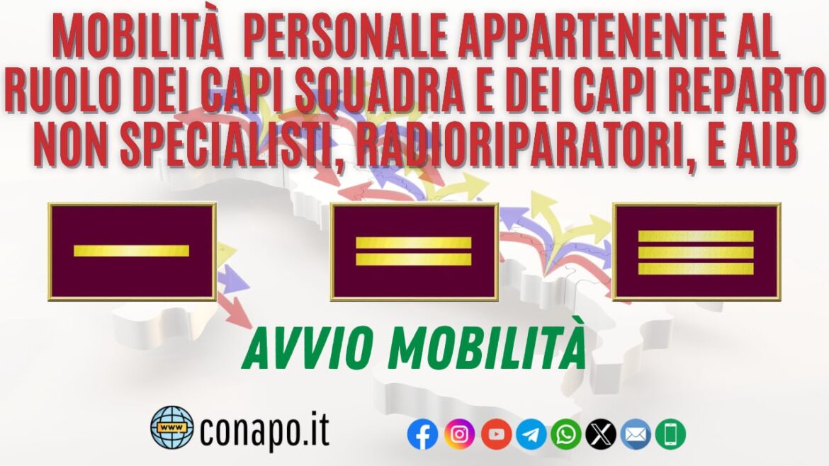 Avvio mobilità ricognitiva a domanda del personale appartenente al ruolo dei Capi Squadra e dei Capi Reparto non specialisti, radioriparatori, e al ruolo speciale ad esaurimento Antincendio Boschivo (AIB) dei Capi Squadra e Capi Reparto.