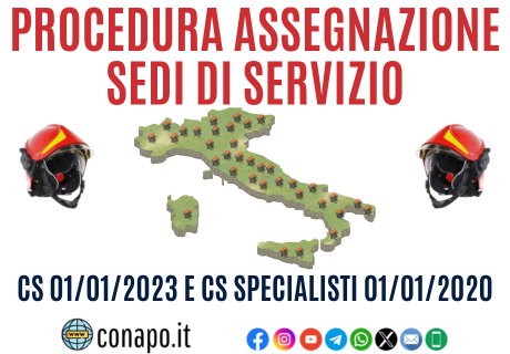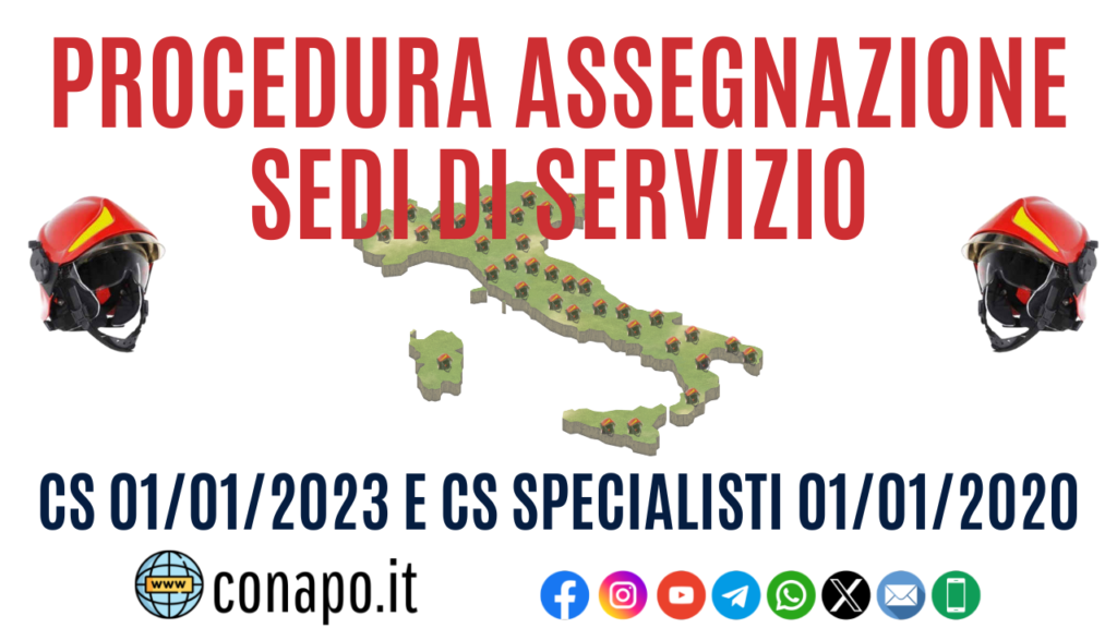 Procedura di scelta sede “CS23” – rif. bando: decreto dipartimentale n. 38 del 18/01/2024 Procedura di scelta sede riservata ai neo Capi Squadra “Non Specialisti”, “Radioriparatori” e “AIB”, aventi decorrenza giuridica 01/01/2023; Gli elenchi delle sedi con l’indicazione dei numeri dei posti disponibili per entrambe le procedure, sono allegati ai rispettivi bandi di concorso che, ad ogni buon fine, si uniscono alla presente circolare.