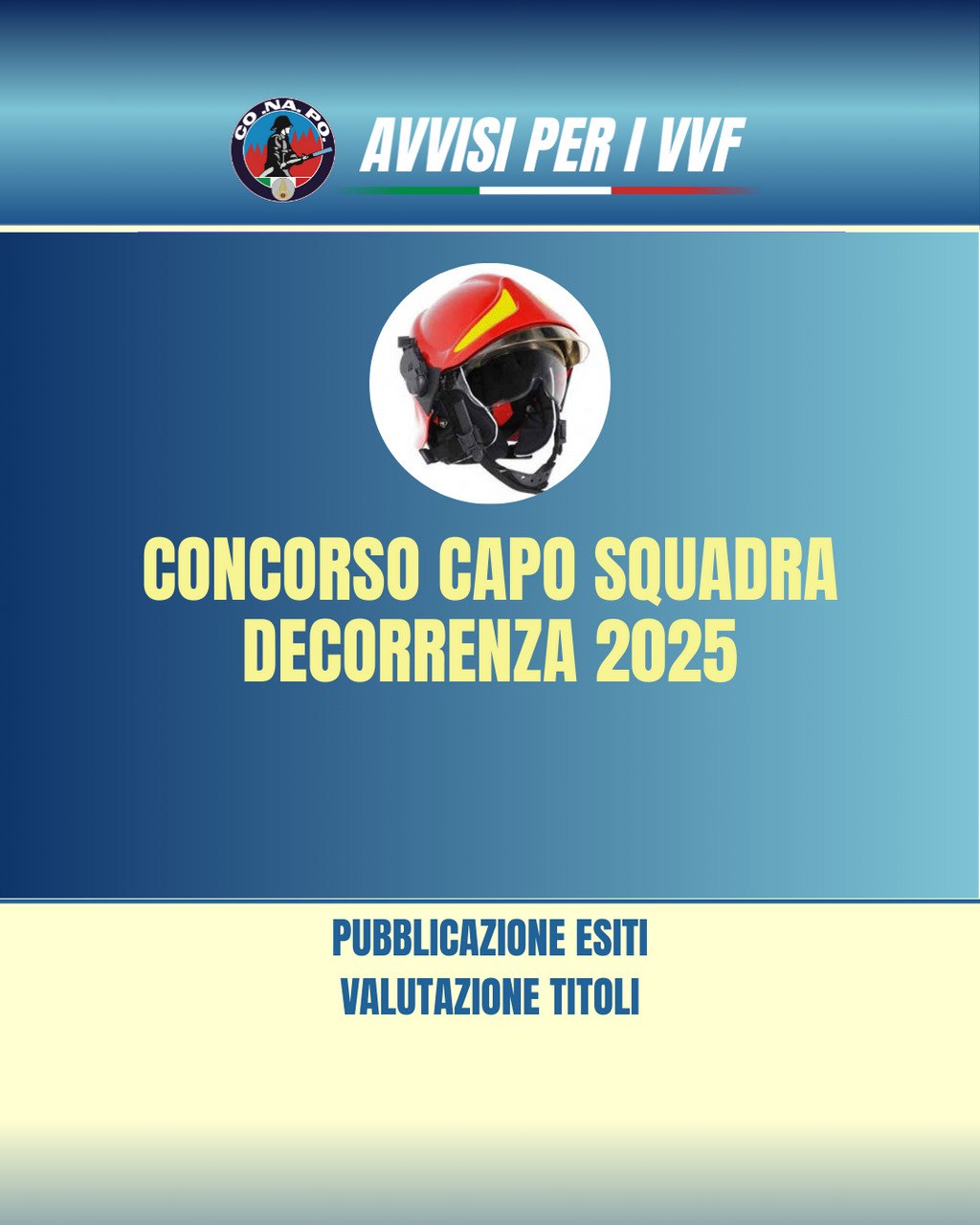 Avviso concernente gli esiti della valutazione dei titoli del concorso interno, per titoli e superamento di un successivo corso di formazione professionale, per la copertura di n. 1031 posti complessivi per l’accesso alla qualifica di capo squadra, di cui n. 991 da generico, n. 21 da radioriparatore e di n. 19 posti per l’accesso alla qualifica di capo squadra aib del corpo nazionale dei vigili del fuoco, con decorrenza 1° gennaio 2025.