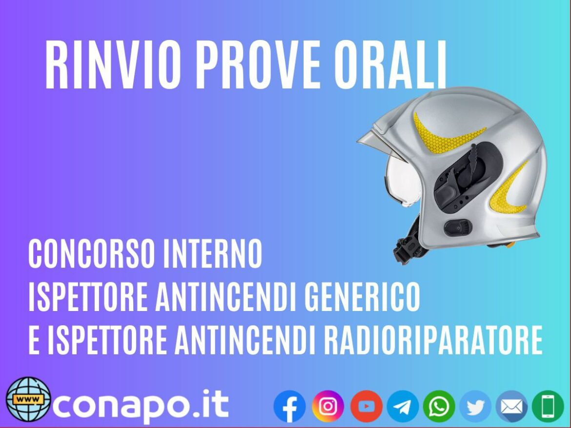 Home News Avviso concernente il rinvio delle prove orali del concorso interno a 62 posti da Ispettore Antincendi del Corpo nazionale dei vigili del fuoco.