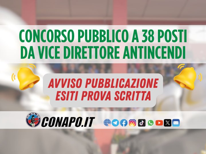 Avviso pubblicazione esiti prova scritta – Concorso pubblico a 38 posti per l’accesso alla qualifica di Vice Direttore del C.N.VV.F. da Redazione_Conapo 6 Novembre 2025 6 Novembre 2025 669 Avviso pubblicazione esiti prova scritta – Concorso pubblico, per titoli ed esami, a 38 posti per l’accesso alla qualifica di Vice Direttore del C.N.VV.F. Leggi la nota Scarica il PDF Stampa Condividi 0 FacebookTwitterPinterestWhatsappTelegramEmail Potrebbe piacerti anche Screening oncologico e cardiovascolare per il personale in servizio e in quiescenza. 4 Dicembre 2025 Il Governo incontra Forze Armate, Comparto Sicurezza e Soccorso Pubblico. 4 Dicembre 2025 Buona Santa Barbara. 4 Dicembre 2025 Avvio 103° corso Allievi Vigili del Fuoco 3 Dicembre 2025 Procedura di selezione per 18 posti di specialista di aeromobile vigile del fuoco per... 3 Dicembre 2025 Avviso relativo alla “prova pratica tecnica” per l’accertamento dei requisiti attitudinali della selezione interna... 2 Dicembre 2025 post precedente Avviso di convocazione alle prove orali della selezione interna di 62 posti per gli Ispettori piloti di aeromobile; 62 posti per gli Ispettori specialisti di aeromobile; 12 posti per Ispettori elisoccorritori, decorrenza 2019, 2020, 2021, 2022, 2023 e 2024. prossimo post Conapo a Forza Italia, le richieste per i vigili del fuoco nella legge di bilancio.