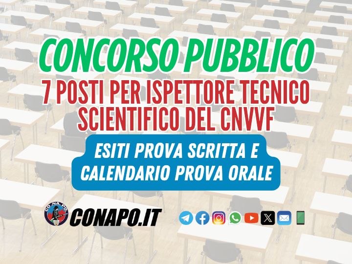 Home News Avviso pubblicazione esiti prova scritta e calendario prova orale concorso pubblico a 7 posti da Ispettore Tecnico Scientifico del Corpo Nazionale dei Vigili del Fuoco.
