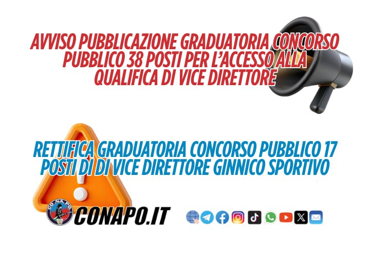 Home News Avviso pubblicazione graduatoria concorso pubblico, per esami, a 38 posti per l’accesso alla qualifica di vice direttore e rettifica graduatoria concorso pubblico, per titoli ed esami, a 17 posti di di vice direttore ginnico sportivo.