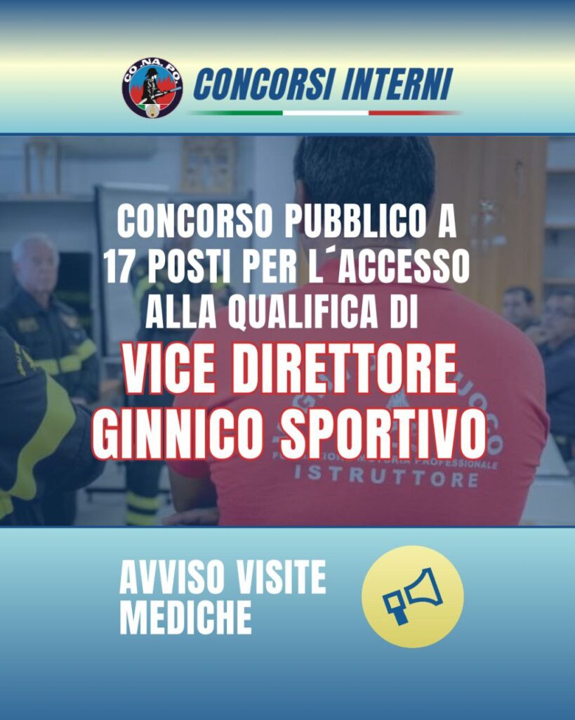 Avviso visite mediche. Concorso pubblico, per esami, a 17 posti per l’accesso alla qualifica di vice direttore ginnico sportivo