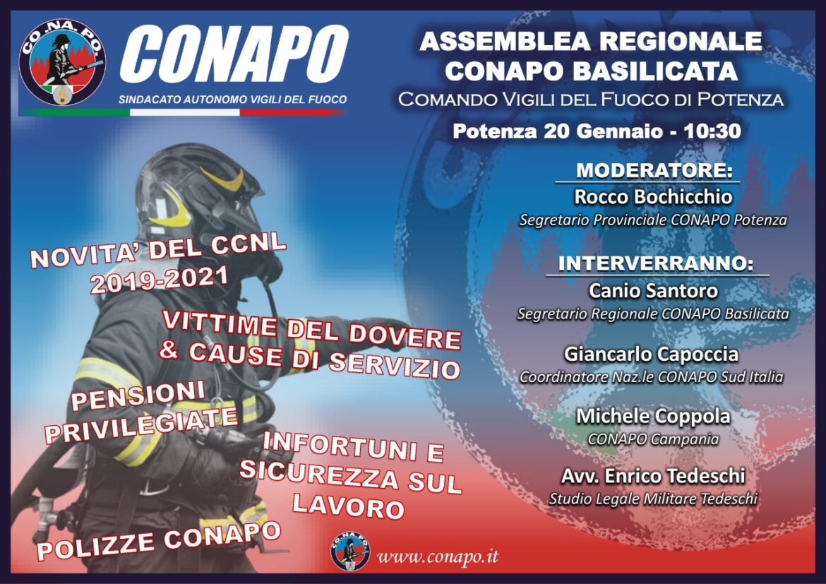 BASILICATA – Assemblea regionale con l’intervento, tra gli altri, dell’avvocato Enrico Tedeschi. da Redazione_Conapo 13 Gennaio 2023 13 Gennaio 2023 613 Condividi 0 FacebookTwitterPinterestWhatsappTelegramEmail Potrebbe piacerti anche PRATO – Escrementi di topi e uccelli nella mensa dei vigili del fuoco: proclamato... 2 Dicembre 2025 PERUGIA – Richiesta di intitolazione della sede VV.F. di Perugia alla memoria del Vigile... 28 Novembre 2025 BELLUNO – Il Prefetto accoglie la richiesta CONAPO dopo la segnalazione in merito alla... 24 Novembre 2025 RIMINI – Urgente ripristino impianto di climatizzazione presso distaccamento di Cattolica. 23 Novembre 2025 REGGIO EMILIA – Mozione ordinaria per il Consiglio comunale, carenza organico dei Vigili del... 21 Novembre 2025 REGGIO EMILIA – i motivi dello stato di agitazione CONAPO (video). 21 Novembre 2025 post precedente ABRUZZO – Richiesta trasmissione verbale relativo alla riunione per pianificazione didattica 2023 svolta in data 21 dicembre 2022. prossimo post L’AQUILA – Gravi irregolarità nella procedura di mobilità territoriale – Proclamato lo stato di agitazione.