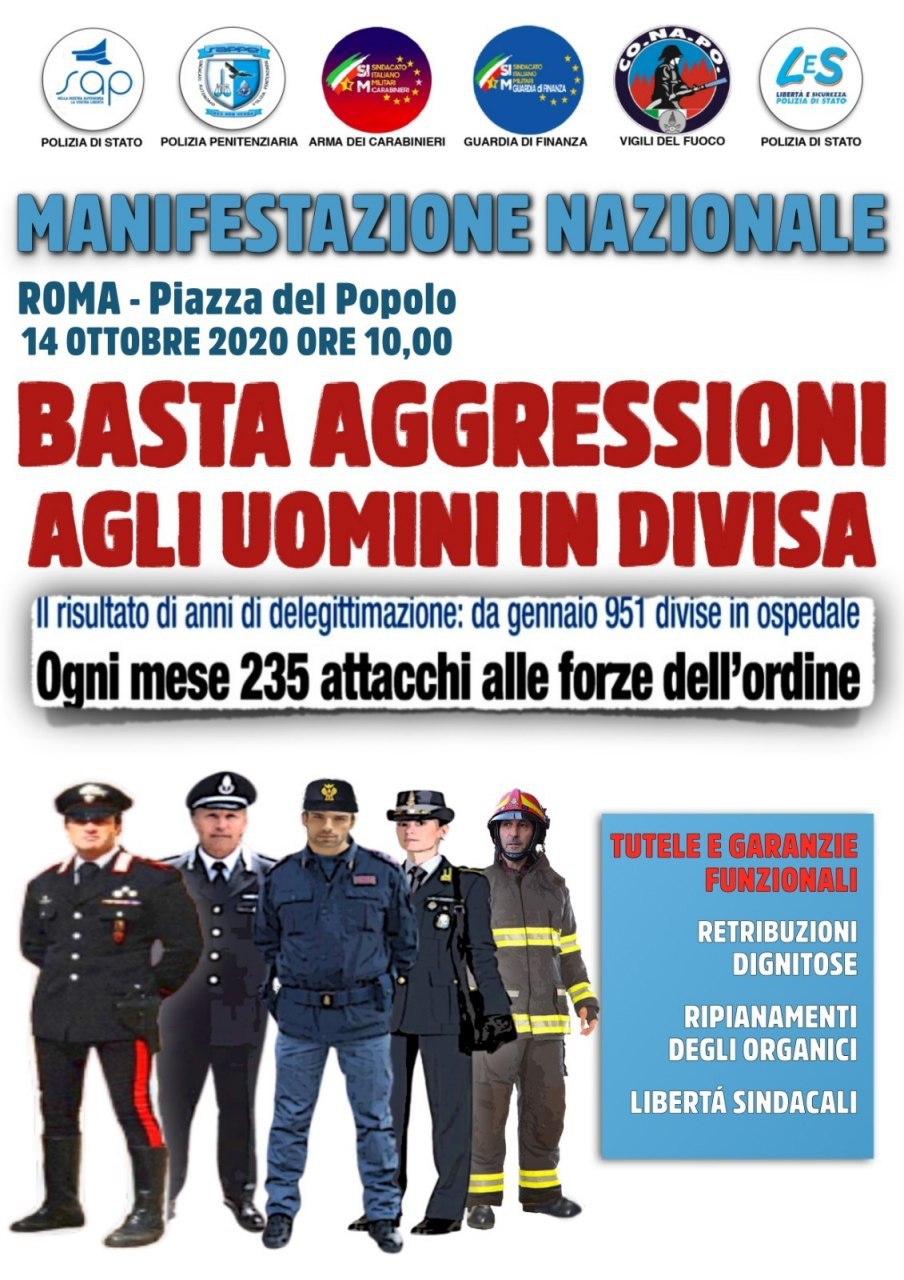 Basta aggressioni agli uomini in divisa – maggiori tutele legali – maggiori retribuzioni e assunzioni – il 14 ottobre manifestazione a Roma con i sindacati autonomi delle divise!