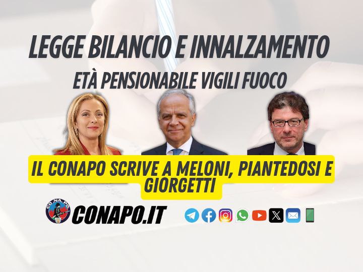 Il CONAPO scrive al Presidente del Consiglio e ad altri rappresentanti del Governo e del Ministero dell’Interno in merito alla “Bozza Disegno di Legge di Bilancio e innalzamento età pensionabile – Richiesta deroga per i Vigili del Fuoco e richiesta di incontro”.