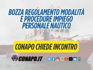 Il CONAPO ha inviato una richiesta formale ai vertici del Dipartimento dei Vigili del Fuoco per un incontro e l’eventuale apertura di un tavolo di concertazione in merito alla bozza di regolamento sulle modalità e procedure d’impiego delle specialità nautiche del Corpo nazionale dei Vigili del Fuoco, relativa al servizio antincendi nei porti e al soccorso in mare (informativa prot. n. 11599 del 16/06/2025).