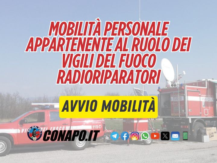 Avvio della procedura di mobilità volontaria a domanda del personale appartenente al ruolo dei Vigili del Fuoco radioriparatori