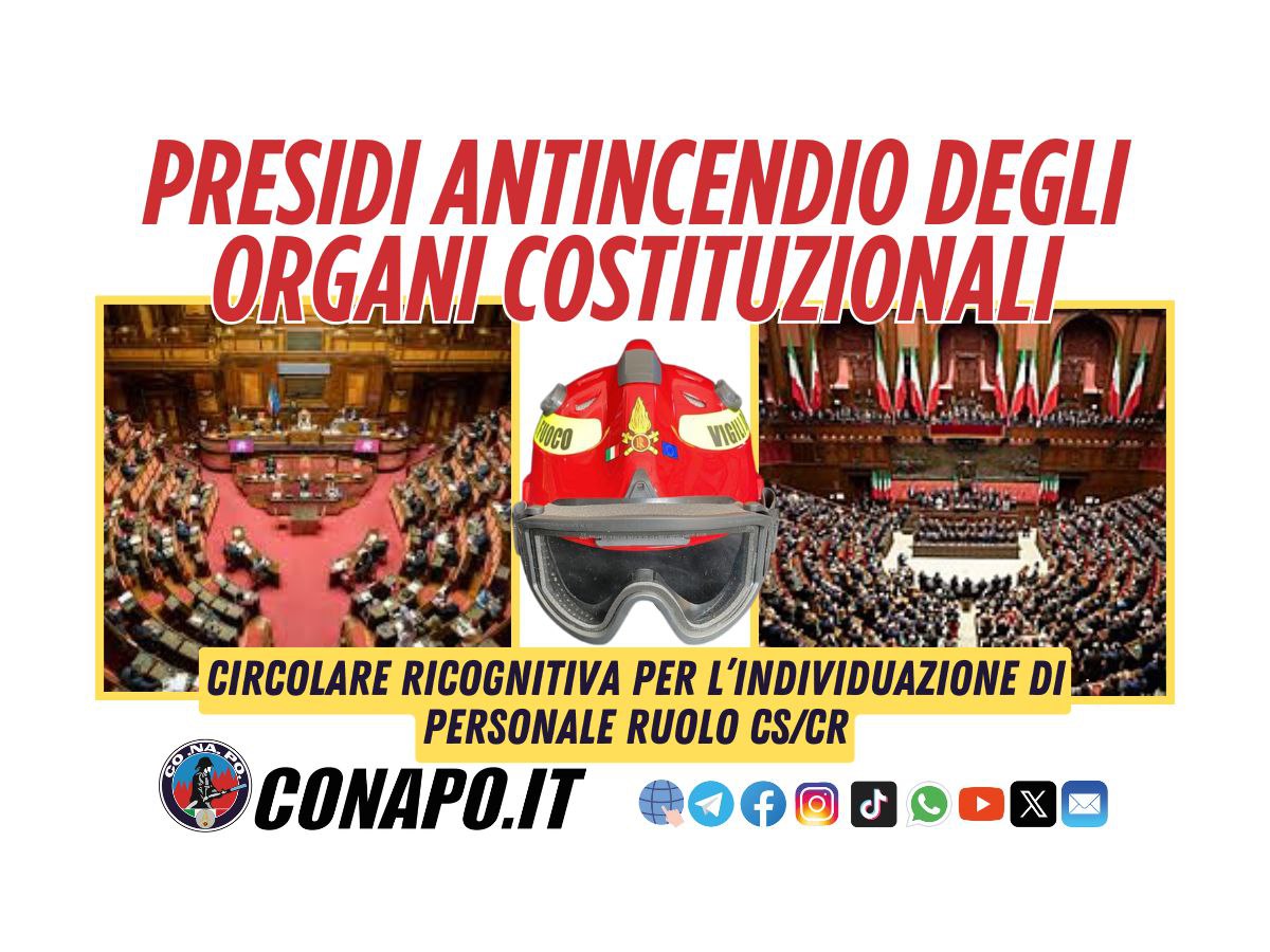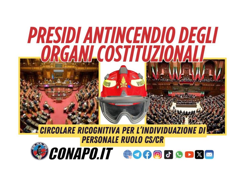 Circolare ricognitiva per l’individuazione di personale dei ruoli dei Vigili del Fuoco, dei Capi Squadra e dei Capi Reparto disponibili a prestare servizio nei Presidi antincendio presso gli Organi Costituzionali.