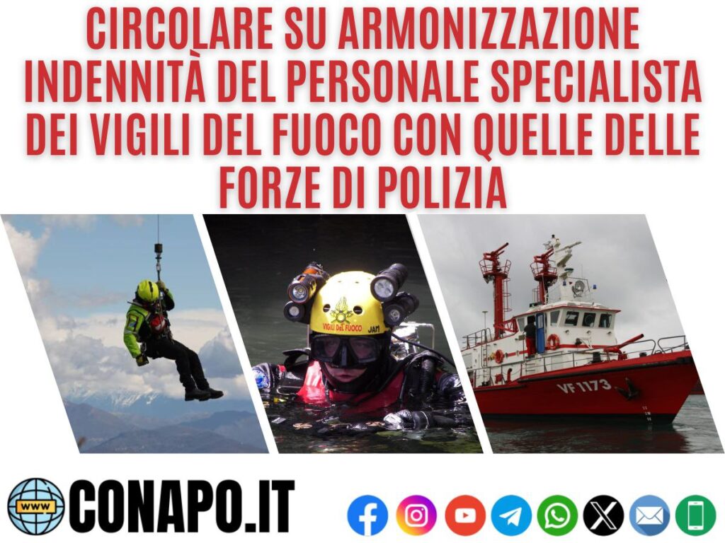 Circolare su armonizzazione indennità del personale specialista dei Vigili del Fuoco con quelle delle Forze di Polizia