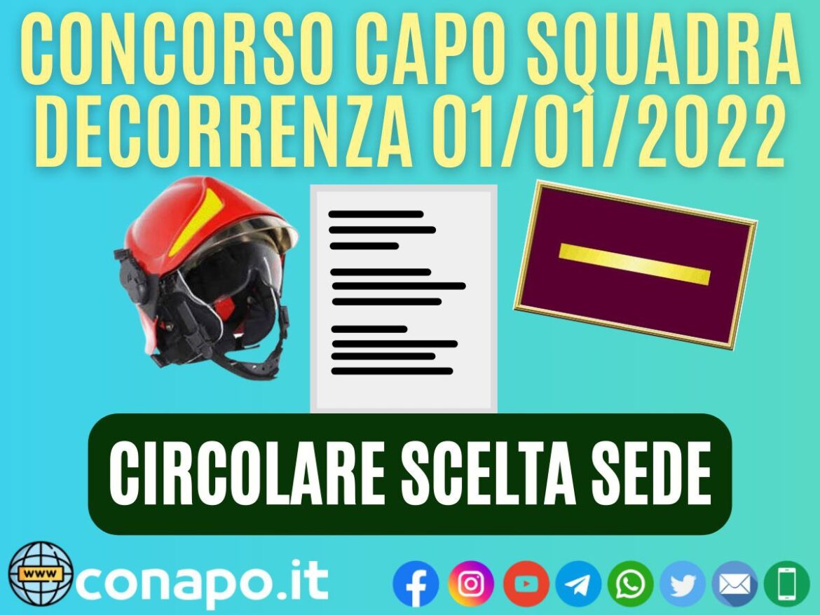 Concorso a 762 posti di capi squadra del ruolo dei capi squadra e dei capi reparto del CNVVF. – Decorrenza 01/01/2022. Scelta sede di servizio.