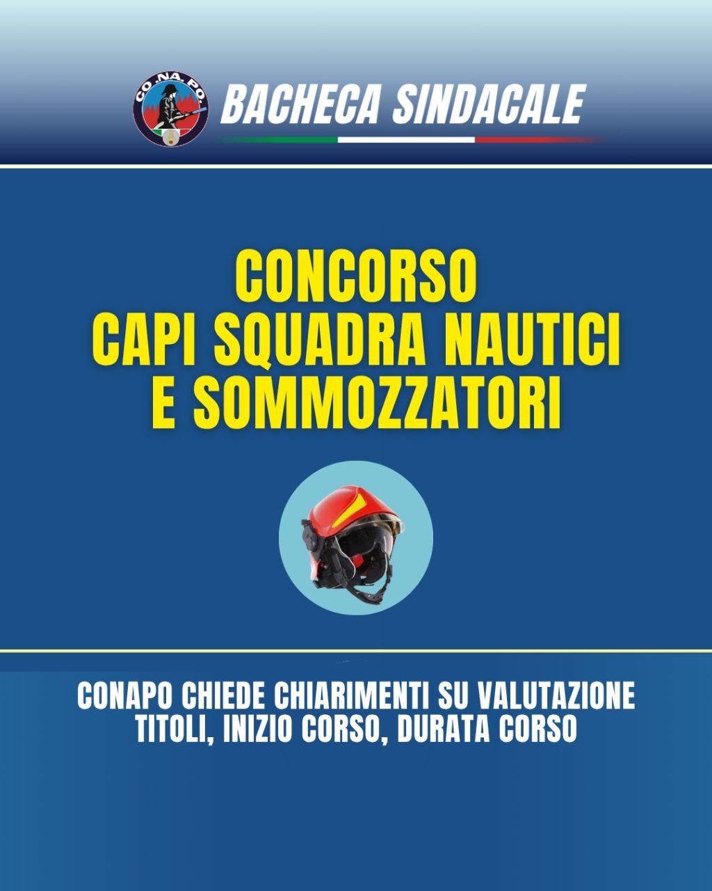 Il CONAPO ha richiesto chiarimenti urgenti in merito ai concorsi interni per nautici (macchina e coperta) e sommozzatori dei Vigili del Fuoco.
