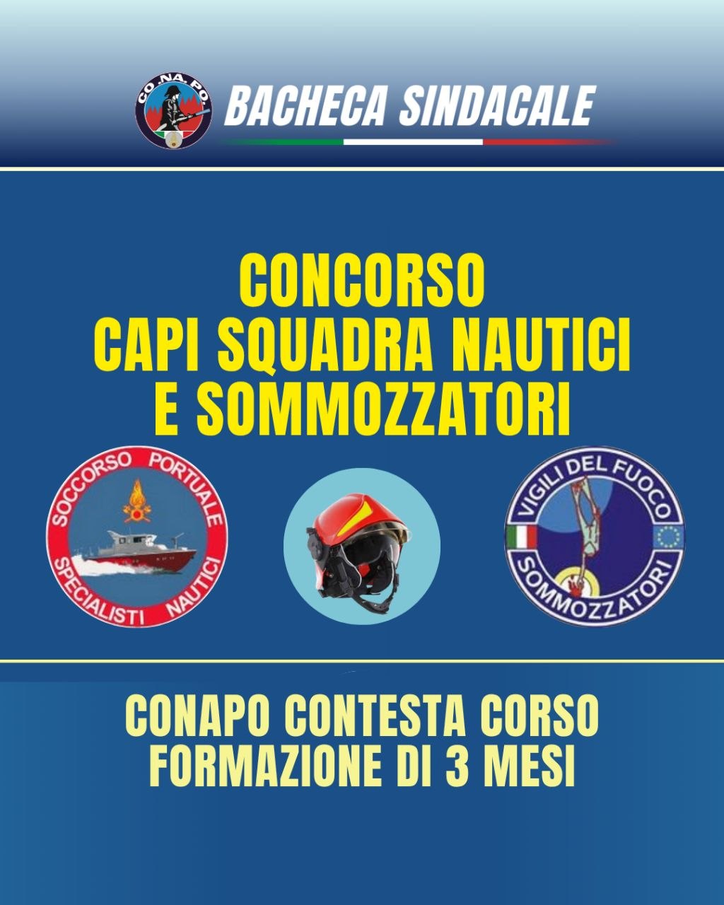 Il CONAPO contesta la durata di 3 mesi del corso di formazione per capi squadra nautici e sommozzatori, ritenendola illegittima per le annualità 2021 e 2022, per le quali la legge prevede una durata ridotta a 5 settimane.