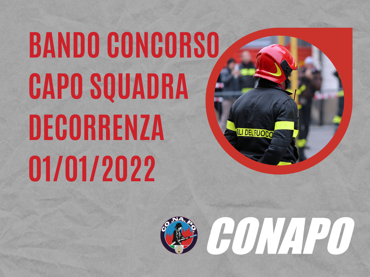 E’ indetta una procedura concorsuale, per titoli e superamento di un successivo corso di formazione professionale, per la copertura di n. 762 posti complessivi per l’accesso alla qualifica di capo squadra del ruolo dei capi squadra e dei capi reparto, di cui n. 754 da generico e n. 8 da radioriparatore, e di n. 15 posti per l’accesso alla qualifica di capo squadra AIB nel ruolo ad esaurimento dei capi squadra e dei capi reparto AIB del Corpo nazionale dei vigili del fuoco, con decorrenza 1° gennaio 2022.