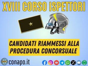 Concorso interno per la copertura di n. 313 posti per l’accesso alla qualifica di ispettore antincendi del CNVVF. Candidati riammessi alla procedura concorsuale – XVIII corso di formazione.