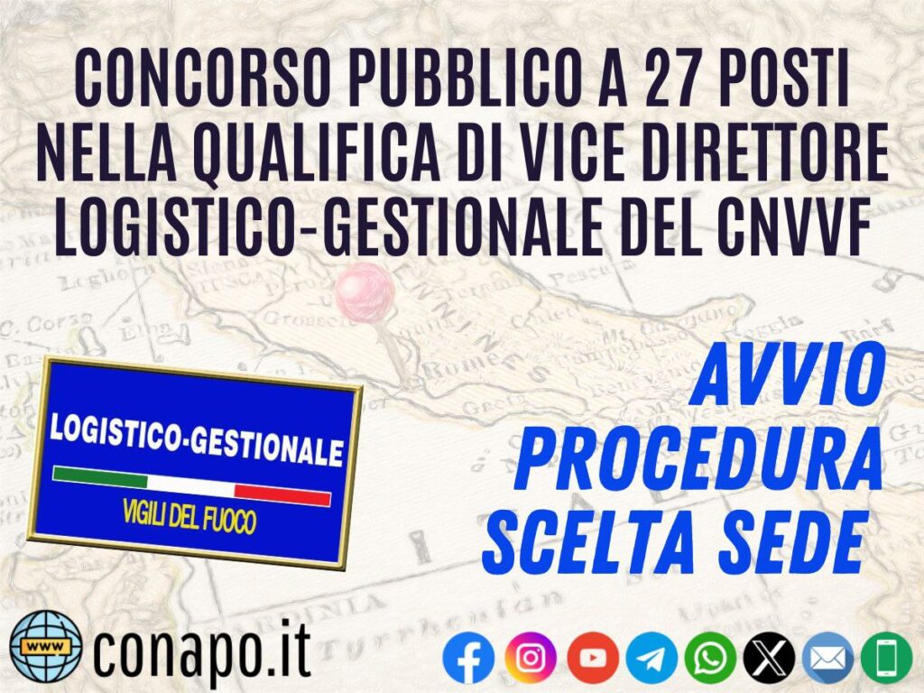 Concorso pubblico a 27 posti di vice direttore logistico gestionale del Corpo nazionale dei Vigili del Fuoco. Avvio procedura scelta sede di servizio.