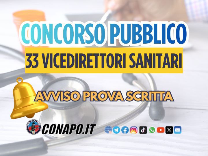 Concorso pubblico, per titoli ed esami, a 33 posti per l’accesso alla qualifica di Vice Direttore Sanitario nel C.N.VV.F. – Avviso prova scritta.