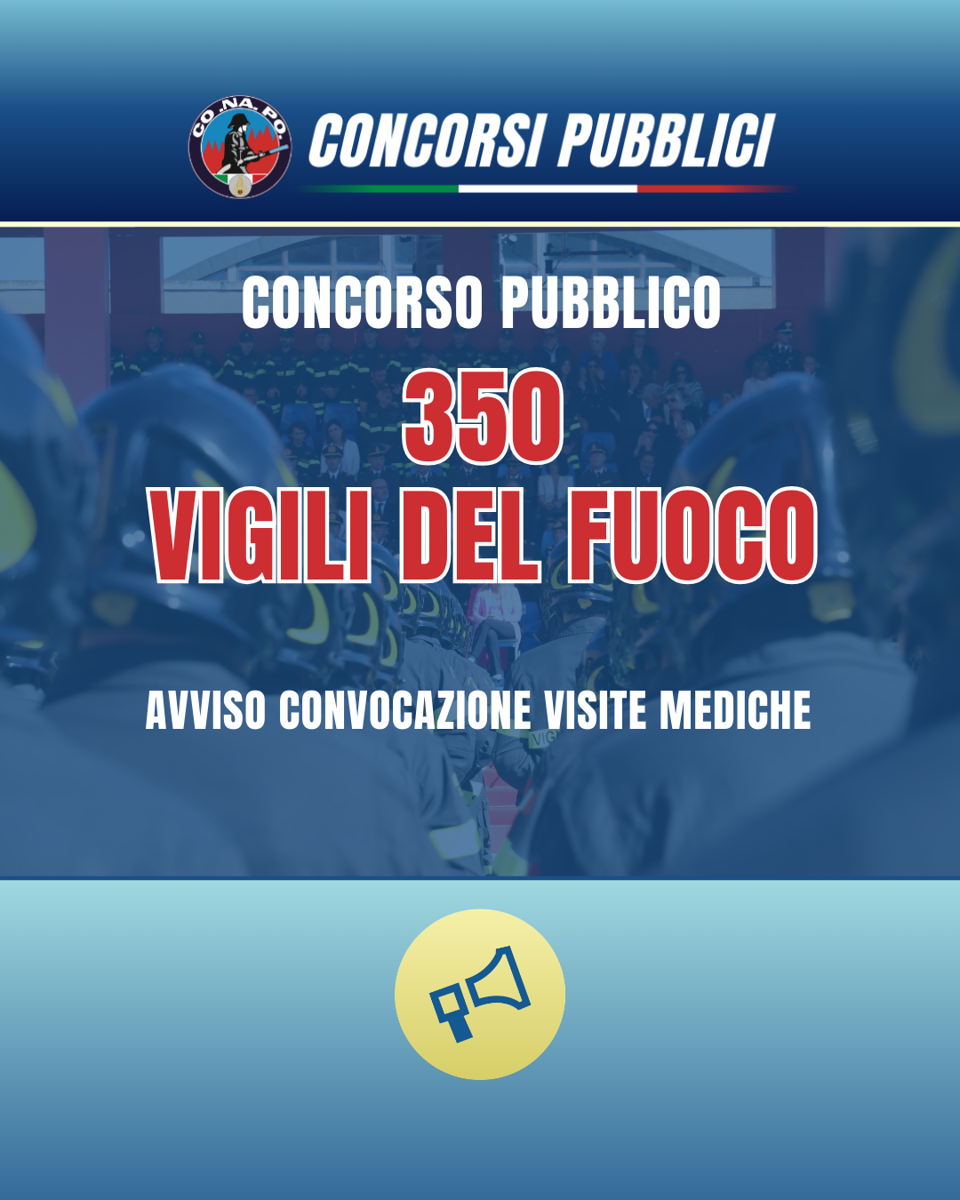 Concorso pubblico, per titoli ed esami, a 350 posti di vigile del fuoco nel CNVVF – Avviso convocazione visite mediche da Redazione_Conapo 16 Febbraio 2026 16 Febbraio 2026 1,K Clicca per il calendario Leggi la nota Scarica il PDF Stampa Condividi 0 FacebookTwitterPinterestWhatsappTelegramEmail Potrebbe piacerti anche Convocazione III ° incontro tavolo tecnico per la programmazione didattica 16 Febbraio 2026 Assegnazione temporanea, ai sensi dell’art. 42 del D.P.R. n. 64/2012, di personale appartenente al... 16 Febbraio 2026 Assegnazione temporanea, ai sensi dell´art. 42 del D.P.R. n. 64/2012, di personale appartenente al... 16 Febbraio 2026 Assegnazione temporanea, ai sensi dell´art. 42 del D.P.R. n. 64/2012, di personale appartenente al... 16 Febbraio 2026 Circolare su modalità per le candidature alle elezioni degli RLS 14 Febbraio 2026 Ottavo centenario della morte di San Francesco – Assisi (22 febbraio – 22 marzo... 13 Febbraio 2026 post precedente Assegnazione temporanea, ai sensi dell’art. 42 del D.P.R. n. 64/2012, di personale appartenente al ruolo dei Direttivi che espletano funzioni operative, nonché al ruolo ad esaurimento dei Direttivi Speciali che espletano funzioni operative per le esigenze della Direzione Regionale VV.F. Basilicata e del Comando VV.F. di Matera. Avvio Interpello prossimo post Convocazione III ° incontro tavolo tecnico per la programmazione didattica