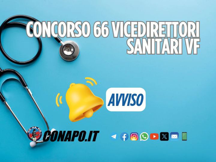 Concorso pubblico, per titoli ed esami, a 66 posti per l’accesso nella qualifica di vice direttore sanitario del C.N.VV.F. – Avviso. da Redazione_Conapo 18 Giugno 2025 18 Giugno 2025 548 Leggi la nota Scarica il PDF Stampa Condividi 0 FacebookTwitterPinterestWhatsappTelegramEmail Potrebbe piacerti anche Pubblicazione graduatorie finali – Concorsi pubblici a 7 posti per l’accesso alla qualifica di... 5 Dicembre 2025 Screening oncologico e cardiovascolare per il personale in servizio e in quiescenza. 4 Dicembre 2025 Il Governo incontra Forze Armate, Comparto Sicurezza e Soccorso Pubblico. 4 Dicembre 2025 Buona Santa Barbara. 4 Dicembre 2025 Avvio 103° corso Allievi Vigili del Fuoco 3 Dicembre 2025 Procedura di selezione per 18 posti di specialista di aeromobile vigile del fuoco per... 3 Dicembre 2025 post precedente Risposta a nota CONAPO sui convocati alla selezione interna per ispettori aeronaviganti senza trattamento di missione. prossimo post Tutela della salute e della sicurezza nei luoghi di lavoro – D.lgs. 81/2008 – Assunzione di sostanze stupefacenti o psicotrope e relativi stati di tossicodipendenza, assunzione di alcol e patologie alcol correlate – Procedure di accertamento sanitario.