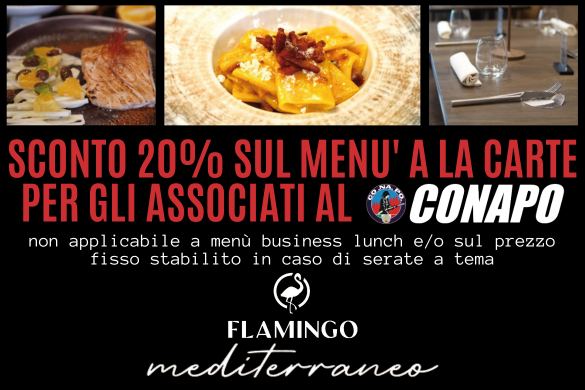Convenzione Ristorante Flamingo Mediterraneo (Roma) per gli iscritti al Conapo. da Redazione_Conapo 2 Ottobre 2023 2 Ottobre 2023 1,5K Condividi 0 FacebookTwitterPinterestWhatsappTelegramEmail Potrebbe piacerti anche Attribuzione degli scatti convenzionali al 31 dicembre 2024 a favore del personale del Corpo... 17 Dicembre 2025 Elezione dei rappresentanti dei lavoratori per la sicurezza. 16 Dicembre 2025 Consiglio dei Ministri n. 151 – 11 Dicembre 2025 – Proroga termini – Disposizioni... 12 Dicembre 2025 Specialisti di aeromobile – Decreto di inquadramento ed assegnazione sede. 10 Dicembre 2025 Incontro governo-sindacati sulla legge di Bilancio, l’intervento del Segretario Generale Marco Piergallini. 9 Dicembre 2025 Procedura di assunzione di n. 97 unità nella qualifica di operatore nel ruolo degli... 9 Dicembre 2025 post precedente Emergenza alluvionale in Libia. ICS Sala Crisi Nazionale in assetto S1. Periodo: 26-30 settembre 2023. prossimo post ABRUZZO – Ritardi nella ricarica delle Card Buoni Pasti Elettronici EDENRED.