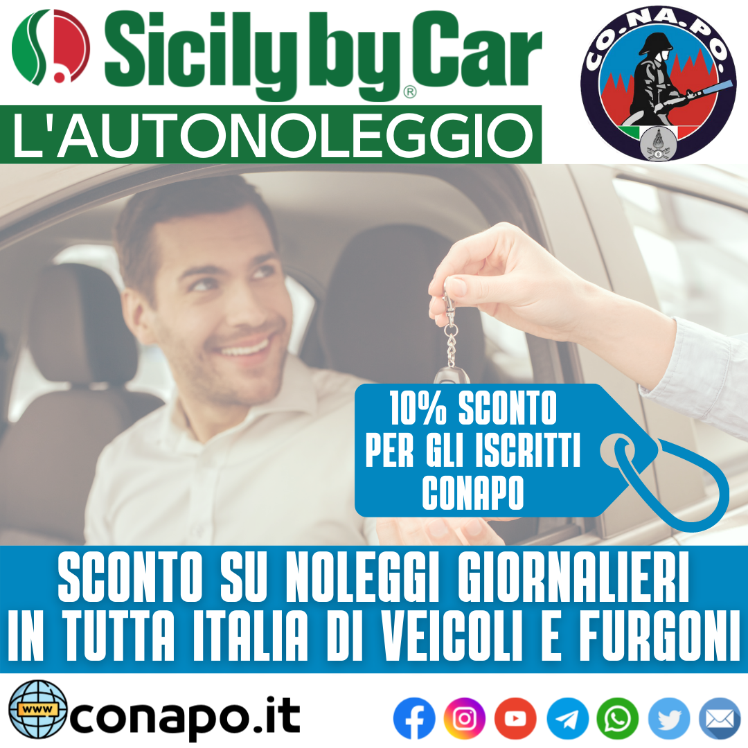 Sicily by Car Spa è lieta di offrire agli iscritti CONAPO uno sconto del 10% sulla tariffa base di noleggio al netto di supplementi aggiuntivi.