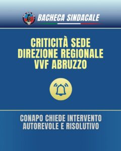 Il sindacato CONAPO segnala una grave e ormai insostenibile situazione logistica e strutturale della Direzione Regionale dei Vigili del Fuoco Abruzzo, chiedendo un intervento urgente e risolutivo ai Vertici del Corpo Nazionale e del Dipartimento.