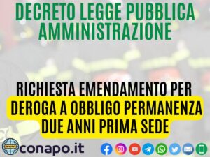 Richiesta EMENDAMENTO per deroga all’ obbligo per i Vigili del Fuoco di due anni permanenza nella sede di prima assegnazione, nel caso di disponibilità presso la residenza.