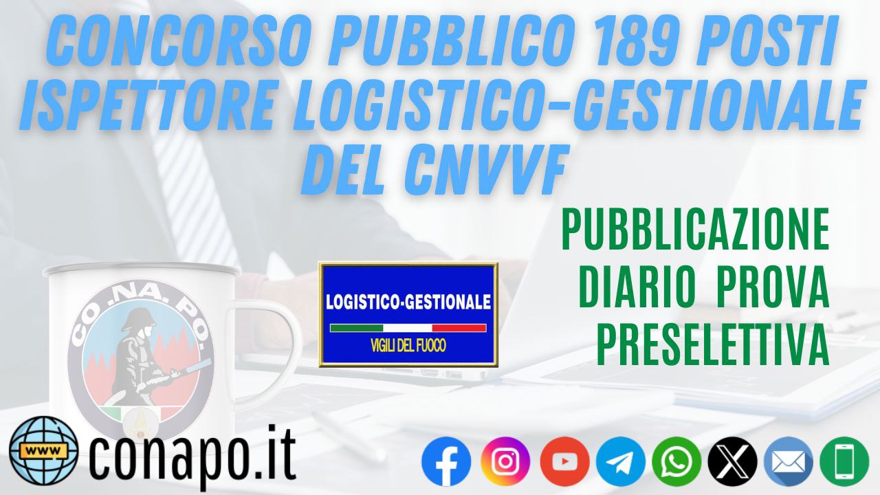 Diario prova preselettiva concorso pubblico a 189 posti per l’accesso alla qualifica di ispettore logistico – gestionale del Corpo nazionale dei vigili del fuoco.