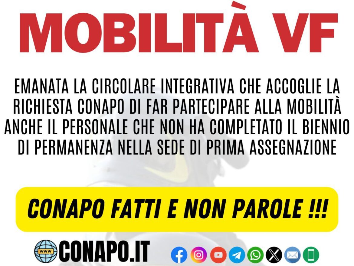 circolare integrativa che accoglie la richiesta CONAPO di far partecipare alla mobilità anche il personale che non ha completato il biennio di permanenza nella sede di prima assegnazione.