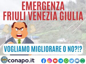 Solo qualche settimana fa questa O.S. CONAPO aveva evidenziato le carenze organizzative e gestionali emerse durante l’Emergenza alluvione in Emilia Romagna, nessuno però poteva immaginare che mancanze ancora più gravi si sarebbero verificate durante l’Emergenza maltempo in Friuli Venezia Giulia iniziata il 24 luglio u.s. ed ancora in corso.