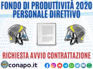 Con la presente il CONAPO sollecita la convocazione di un apposito incontro per la definizione degli accordi sindacali al fine di consentire al più presto la distribuzione al personale Direttivo del CNVVF degli incrementi retributivi derivanti del Fondo di Produttività relativo all’anno 2020.