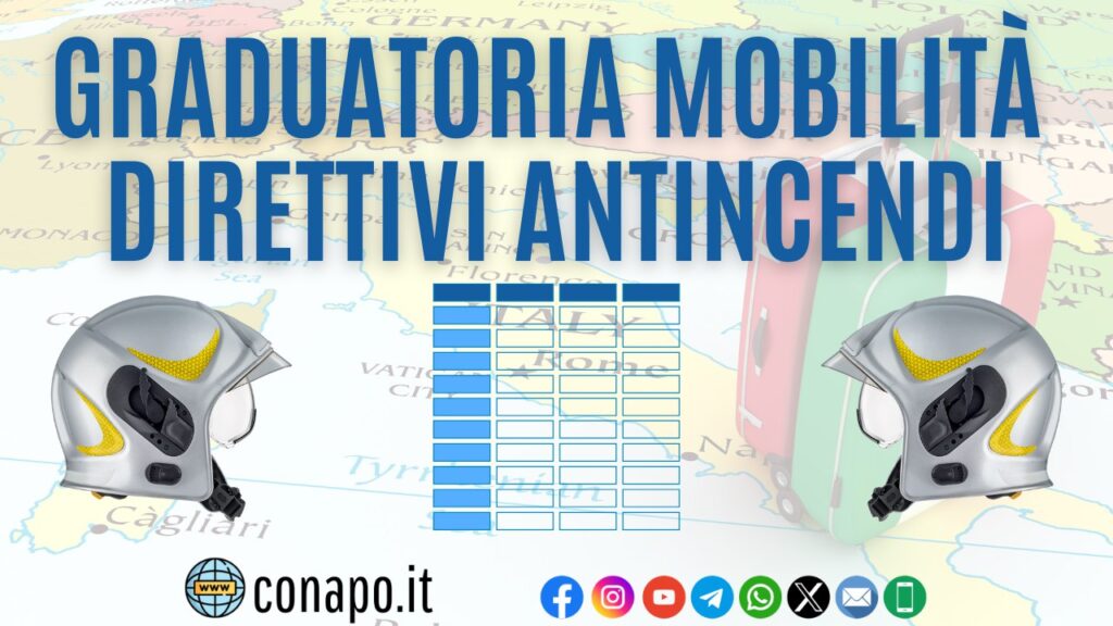 Graduatoria di mobilità del personale appartenente al ruolo dei direttivi che espletano funzioni operative. da Redazione_Conapo 15 Luglio 2024 15 Luglio 2024 1,4K Avvio della procedura di mobilità del personale appartenente al ruolo dei direttivi che espletano funzioni operative. Circolare n. 42890 del 2 luglio 2024 Leggi la nota Scarica il PDF Stampa Condividi 0 FacebookTwitterPinterestWhatsappTelegramEmail Potrebbe piacerti anche Attribuzione degli scatti convenzionali al 31 dicembre 2024 a favore del personale del Corpo... 17 Dicembre 2025 Elezione dei rappresentanti dei lavoratori per la sicurezza. 16 Dicembre 2025 Consiglio dei Ministri n. 151 – 11 Dicembre 2025 – Proroga termini – Disposizioni... 12 Dicembre 2025 Specialisti di aeromobile – Decreto di inquadramento ed assegnazione sede. 10 Dicembre 2025 Incontro governo-sindacati sulla legge di Bilancio, l’intervento del Segretario Generale Marco Piergallini. 9 Dicembre 2025 Procedura di assunzione di n. 97 unità nella qualifica di operatore nel ruolo degli... 9 Dicembre 2025 post precedente VENETO – Preoccupante carenza operatori SAF 2A nei Comandi VV.F. del Veneto. Richiesta svolgimento tempestivo corso regionale per Operatori SAF 2A. prossimo post SARDEGNA – Preoccupante carenza operatori SAF 2A nei Comandi della Sardegna. Richiesta svolgimento tempestivo corso regionale per Operatori SAF 2A.