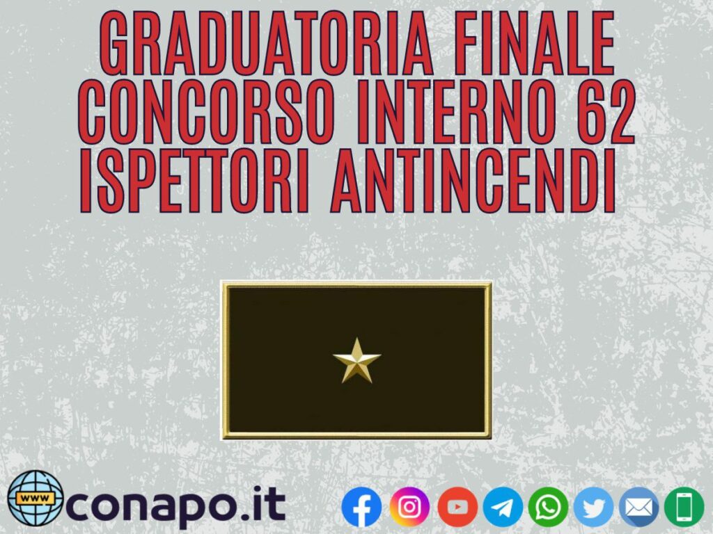 Graduatoria finale del concorso interno a n. 62 posti per l’accesso alla qualifica di ispettore antincendi del Corpo nazionale dei vigili del fuoco.