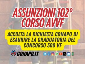 Il CONAPO comunica che dal 27 ottobre 2025 partirà il 102° corso Allievi Vigili del Fuoco.