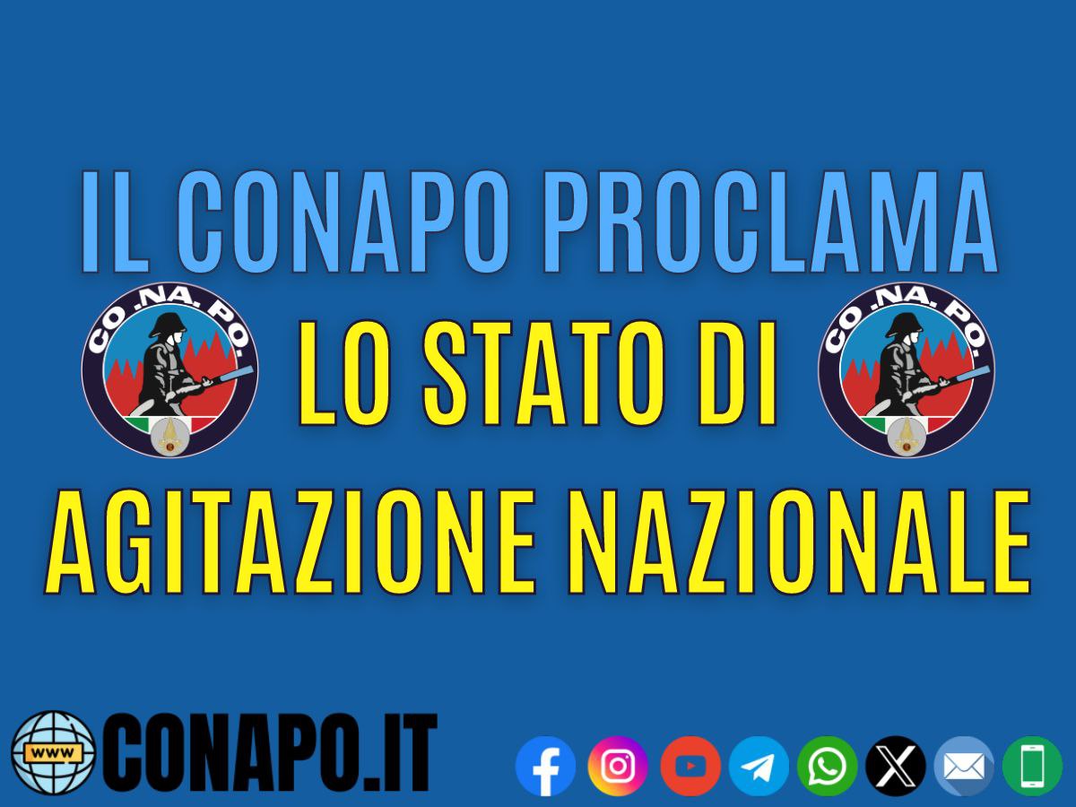 La scrivente Organizzazione Sindacale CONAPO (Sindacato autonomo dei Vigili del Fuoco), con la presente proclama lo stato di agitazione del personale appartenente al Corpo nazionale dei Vigili del Fuoco e preannuncia l’intenzione di indire lo sciopero nazionale di categoria. Parimenti, chiede l’attivazione, nei termini di legge, delle preventive procedure di conciliazione previste dalla Legge n. 149/1990 e ss.mm.ii.