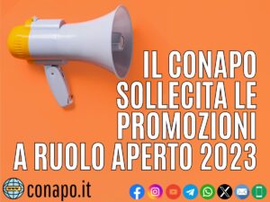 Lo scorso 29 Luglio il CONAPO ha sollecitato la decretazione delle promozioni a ruolo aperto per il personale del Corpo Nazionale che alla data del 01.01.2023 ha maturato i requisiti previsti, sollecito reso necessario per il ritardo di un provvedimento atteso da tanta parte dei nostri colleghi oltre che per la mancanza di informazioni in merito.