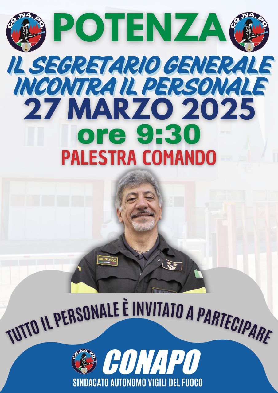 Il Segretario Generale del CONAPO incontra i colleghi in assemblea al Comando di Potenza. da Redazione_Conapo 22 Marzo 2025 22 Marzo 2025 707 Condividi 0 FacebookTwitterPinterestWhatsappTelegramEmail Potrebbe piacerti anche Elezione dei rappresentanti dei lavoratori per la sicurezza. 16 Dicembre 2025 Consiglio dei Ministri n. 151 – 11 Dicembre 2025 – Proroga termini – Disposizioni... 12 Dicembre 2025 Specialisti di aeromobile – Decreto di inquadramento ed assegnazione sede. 10 Dicembre 2025 Incontro governo-sindacati sulla legge di Bilancio, l’intervento del Segretario Generale Marco Piergallini. 9 Dicembre 2025 Procedura di assunzione di n. 97 unità nella qualifica di operatore nel ruolo degli... 9 Dicembre 2025 Nomina in ruolo dei Vigili del Fuoco appartenenti al 100° corso di formazione teorico-pratico... 9 Dicembre 2025 post precedente FVG – Sindacato dei vigili del fuoco denuncia le disfunzioni della centrale d’emergenza di Palmanova (UD). prossimo post Mobilità Capi Squadra e Capi Reparto, il CONAPO sollecita pubblicazione elenco aventi titolo al trasferimento.
