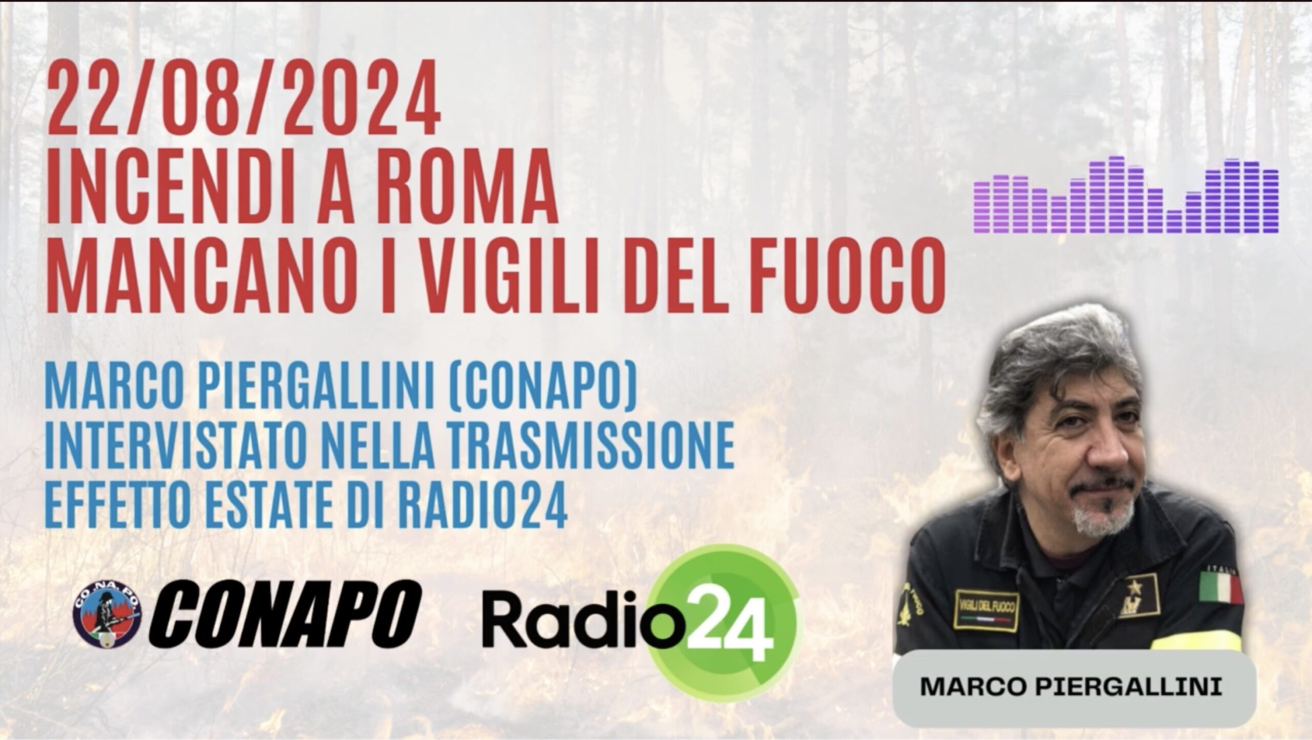 Incendi a Roma, mancano i vigili del fuoco – Marco Piergallini (CONAPO) intervistato nella trasmissione Effetto Estate di Radio24.